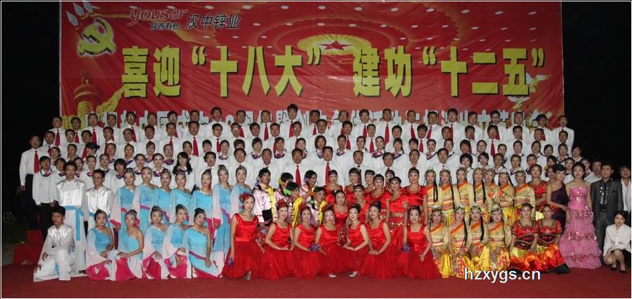 伴著金秋明媚的陽(yáng)光,迎著十月的云淡風(fēng)清,我們迎來(lái)了中華人民共和國(guó)六十三歲華誕。2012年9月26日晚,漢中鋅業(yè)公司“慶祝新中國(guó)成立63周年,喜迎黨的十八大”創(chuàng)先爭(zhēng)優(yōu)活動(dòng)成果匯報(bào)暨文藝匯演活動(dòng)在公司子校操場(chǎng)隆重舉行。全體公司領(lǐng)導(dǎo)與大家一起觀看了晚會(huì)。